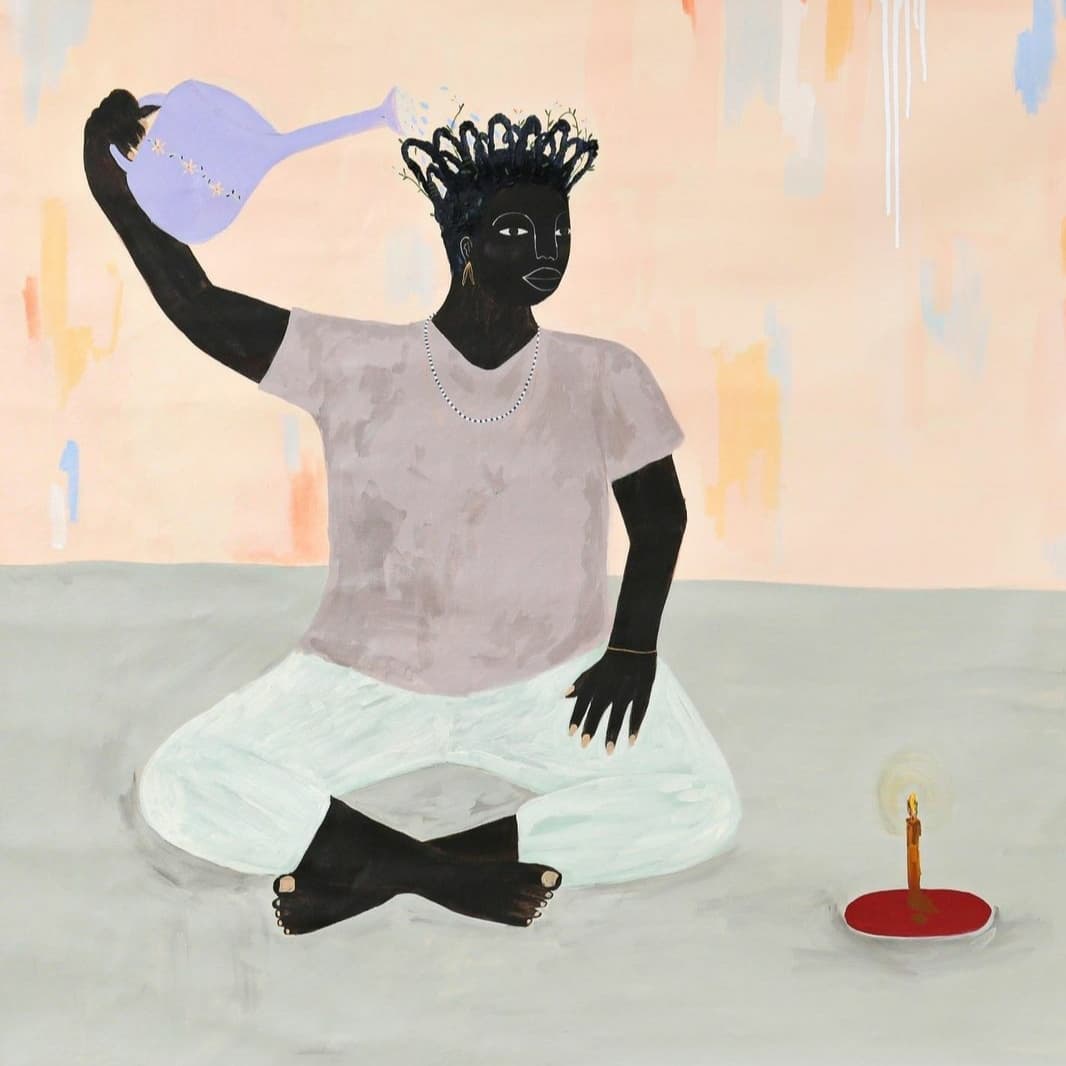 A obra da artista visual Larissa de Souza, com essa pessoa se regando, se auto nutrindo, faz entender que estamos semeando uma ideia, que alguém semeou em nós. Talvez seja a figura mais literal do trabalho. - Gabriel Finotti