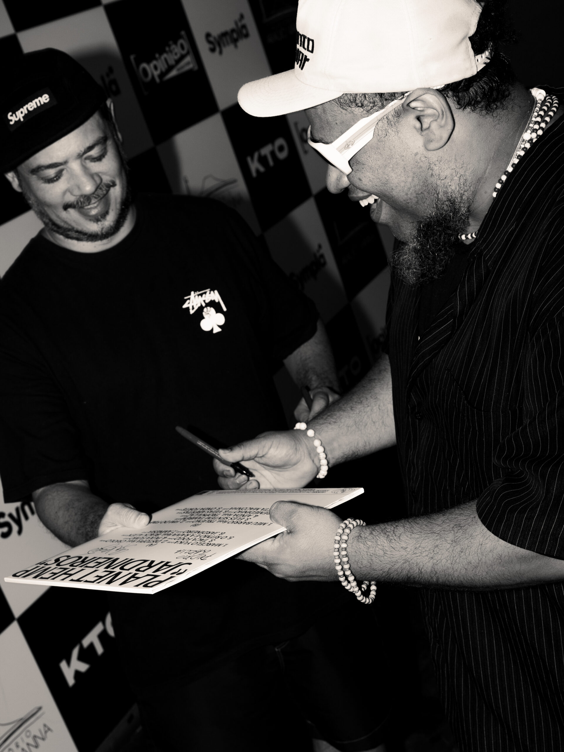 Com Marcelo D2 e BNegão, nos vocais e no comando da plateia, Formigão, no baixo, Pedro Garcia, na bateria, Nobru, na guitarra, e acompanhados pelo DJ Renato Venom, o Planet ainda contou com volta de Daniel Ganjaman para o grupo, tocando teclados e guitarras de apoio. Depois do show, trocamos uma ideia com BNegão, Ganjaman e Pedro (que você pode conferir na sequência deste texto) sobre a volta aos palcos, os dois Grammys Latinos vencidos recentemente pelo grupo, o lançamento de seis novas faixas em JARDINEIROS: A COLHEITA e a influência do rock gaúcho na formação da banda (ouça abaixo a playlist montada pelos caras, que estava tocando antes da apresentação). Eles também autografaram capas do vinil de JARDINEIROS, lançado em 2022 pelo NOIZE Record Club.