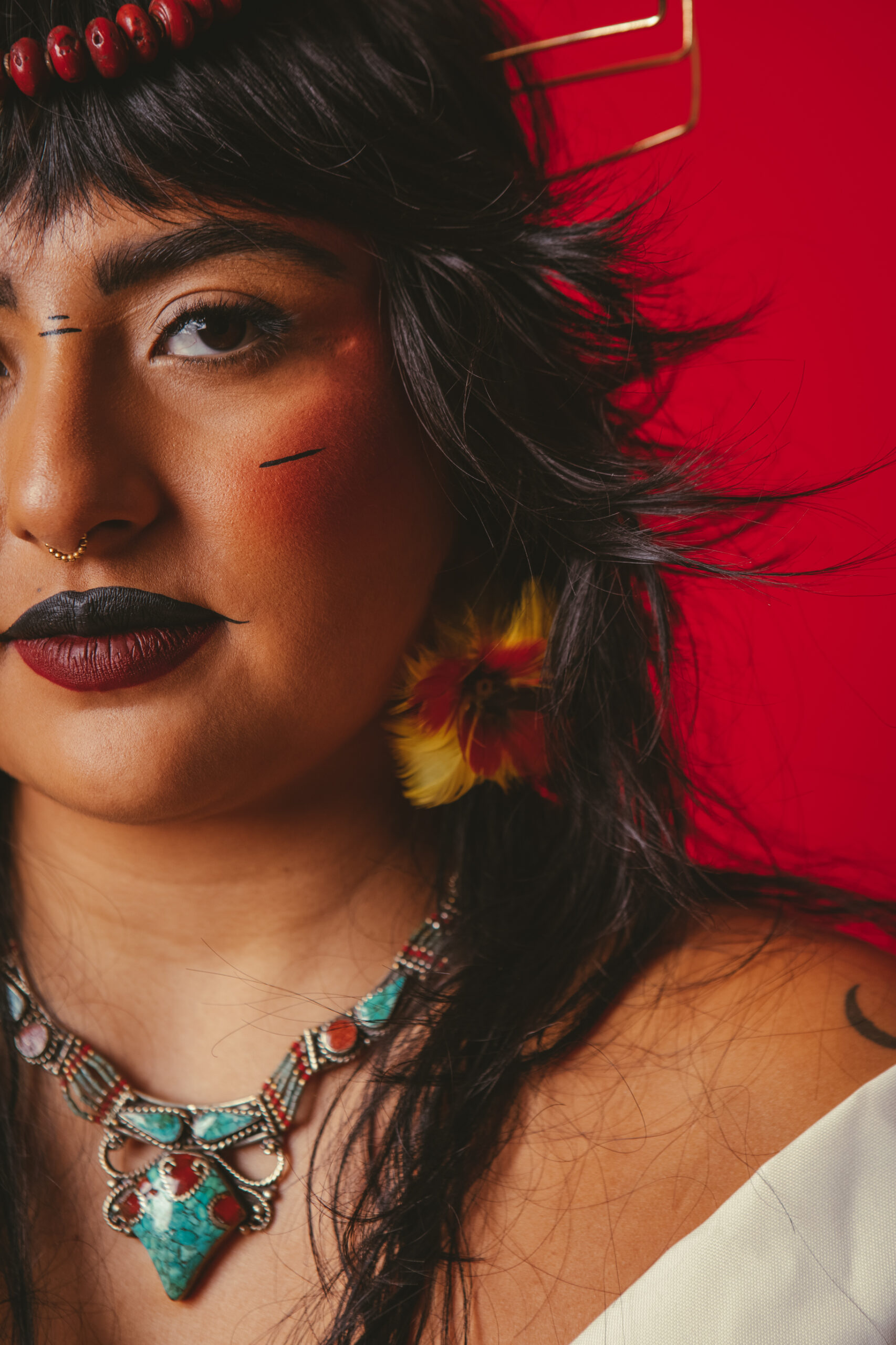 A falta de representatividade desses grupos foi o que a levou a se debruçar em temas como identidade e ancestralidade: “Sendo uma pessoa mestiça, o processo de racialização é algo lento, ambíguo e o racismo é extremamente velado. Foi algo que só me senti à vontade e com alguma propriedade para falar sobre depois de 2020, com 24 anos de idade. De alguma forma, falei sobre isso em todas as músicas porque passei a enxergar a minha vida por essa lente".
