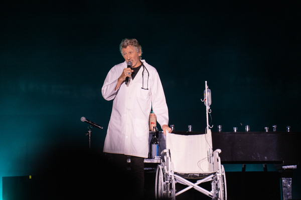 Recados dados, a galera aquecida, veio o momento que todos esperavam: incorporando um dos personagens de seu musical The Wall, vestido de médico, carregando uma cadeira de rodas vazia, a lenda viva entrou no palco. “Comfortably Numb”, em versão reinterpretada, começou a tocar e a plateia foi à loucura. Os telões mostravam uma cidade em ruínas, com enormes grupos de pessoas moribundas vagando pelas ruas. Não poderia haver canção mais simbólica para iniciar o espetáculo, que busca utilizar o grande alcance da arte de Roger para propagar alertas: “Now, I’ve got that feeling once again/ I can’t explain, you would not understand/ This is not how I am/ I have become comfortably numb” [“Agora, tenho aquela sensação mais uma vez/ Não posso explicar, você não entenderia/ Não é isso que eu sou/ Eu me tornei confortavelmente adormecido”].